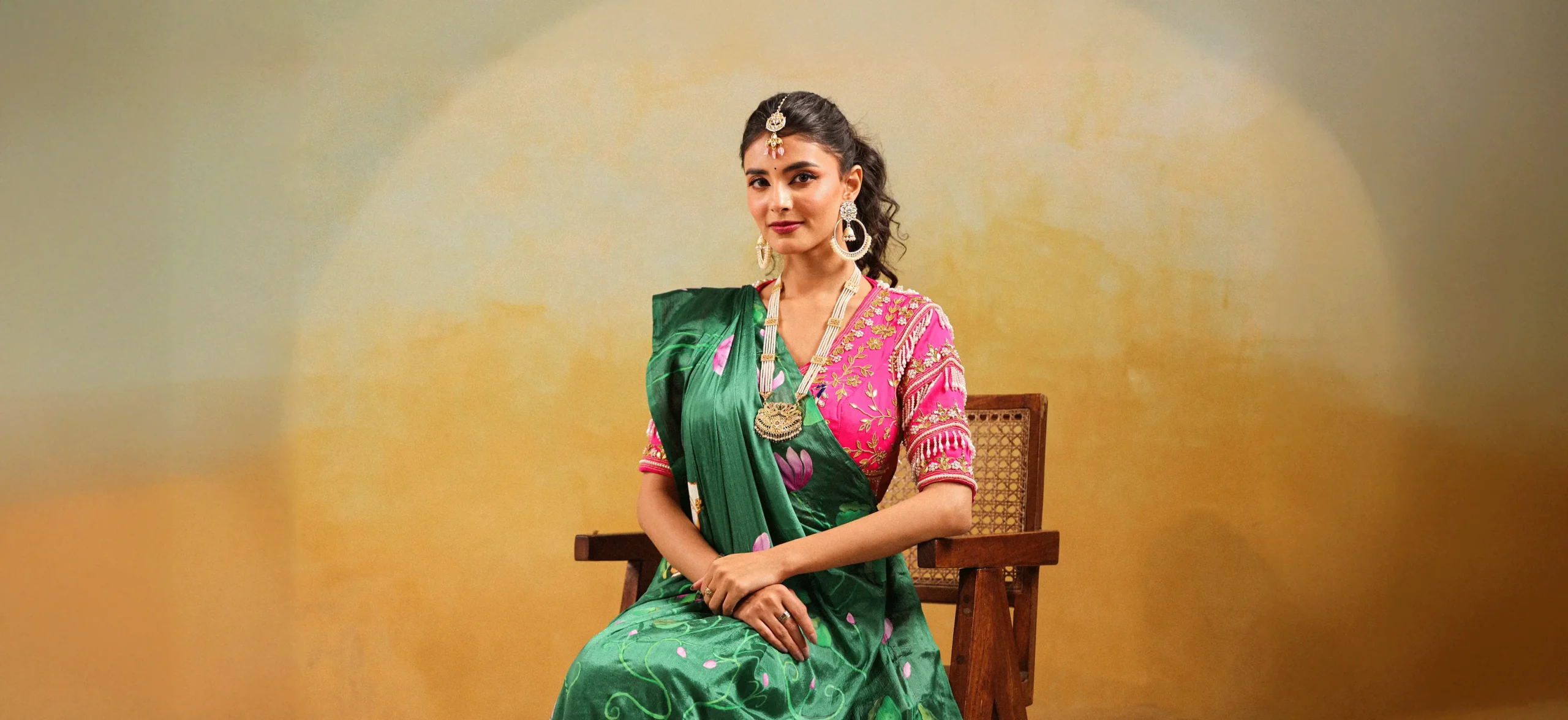 Rooted in traditional Indian artistry. Sarees that honor traditional craftsmanship while feeling distinctly contemporary and personal.